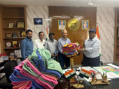 Handing over of 200 blankets to Medak District Collectorate for dis. . .